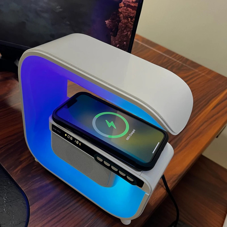 اسپیکر بلوتوثی و شارژر وایرلس مدل HM-G3 با چراغ RGB