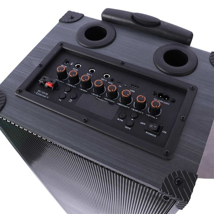 طراحی شده بصورت چمدانی، دارای دستگیره و چرخ به منظور حمل آسان، اقلام همراه محصول شامل دو عدد میکروفون، ریموت کنترل، کابل شارژ